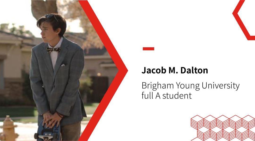 毕业于美国杨百翰大学,高中是full A student(优秀学生);