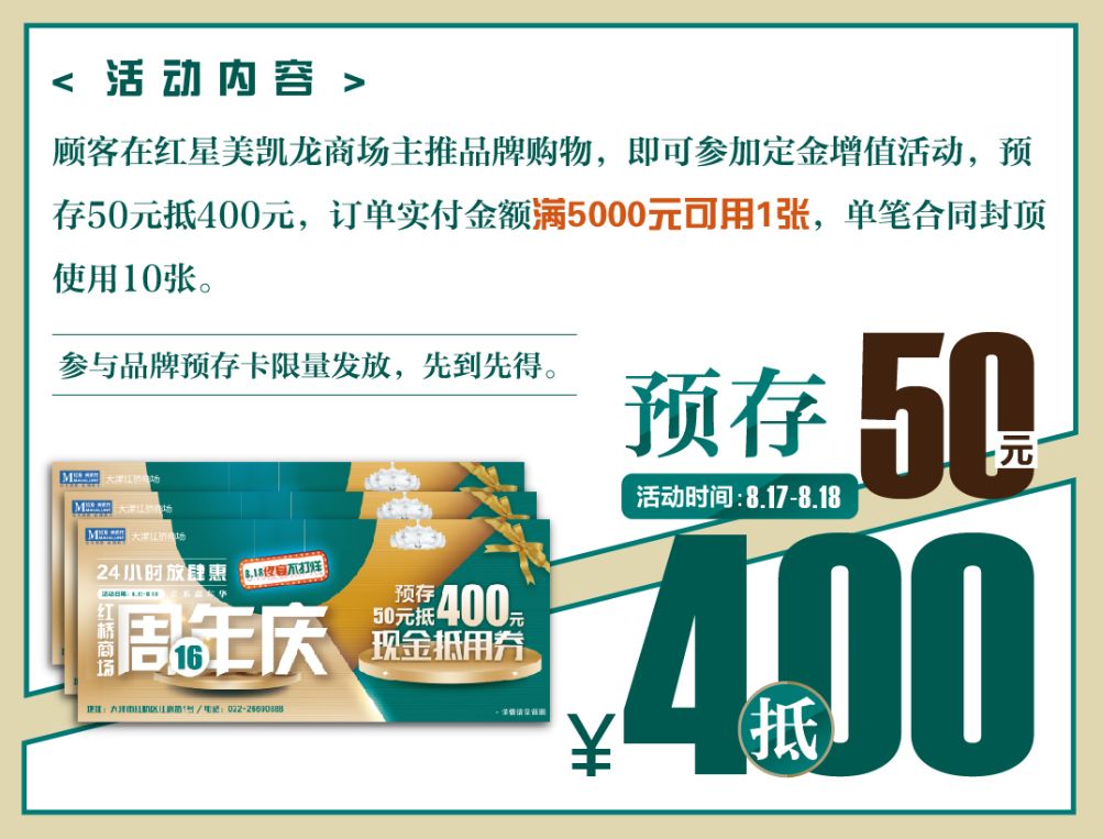 预存50元抵400元